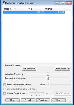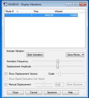 Vibrational and IR analysis was subsequently performed on the final optimized structure of H2 molecule. The following diagram summarizes the results obtained after the analysis.