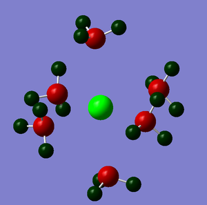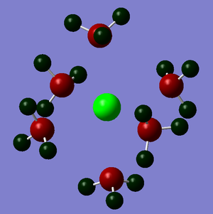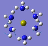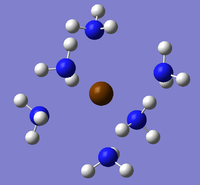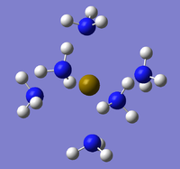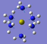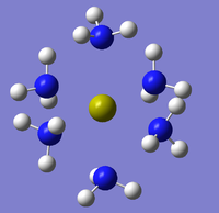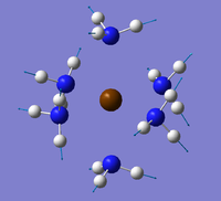 The Ca(NH3)6 was calculated to be the lowest in energy with -376 a.u which corresponds to -987000 KJmol-1. This was 15750 KJmol-1 lower than the Sr(NH3)6 (-370 a.u, -971250 KJmol-1 which was in turn 13125 KJmol-1 lower than Ba(NH3)6 energy (-365 a.u, -968230 KJmol-1). The energy calculations have an associated error of ≈10 kJmol-1 which shows that there is clear distinction in energy between the three compounds even taking into account errors. All 3 RMS gradients were below the 0.001 limit which suggests that they were optimised.