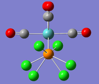 It can be seen that the large majority of the bond lengths and angles have good agreement with the literature values. However, the Mo-P bond for both isomers is not as accurate which could be due to the fact the phenyl groups were replaced with chlorines. It can be seen that the C-O bond is slightly longer in the cis isomer than the trans isomer (1.18 vs 1.17 Å) but that the Mo-C bond for the cis isomer is shorter than in the trans isomer (2.05 vs. 2.06 Å). These can be explained by considering the different geometries of the two isomers. In the cis isomer, the PCl3 ligands lie trans to the carbonyl ligands. Electron density is donated from the phosphorus to the Mo which increases the back-bonding into the C-O π* anti-bonding orbital. This strengthens the Mo-C hence making it shorter and weakens the C-O carbonyl bond hence making it longer.