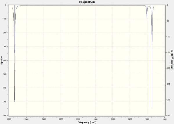 These frequency values show good agreement with literature which shows high accuracy for the calculation. The IR spectrum for these vibrations is shown below in figure 16.