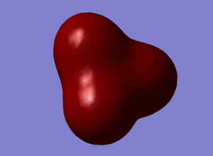 Figure 3: The molecular orbital is fully bonding due to consistent overlap between s orbitals of all 4 atoms in the molecule. It won't be involved in reactions even though it is occupied as it is too close to the centre of the molecule and is quite energetic with -1.35870 a.u.