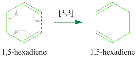 The cope rearrangement is a [3,3]-sigmatropic electrocycle where the product is the reactant, 1,5-hexadiene.