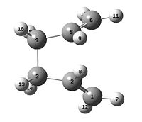 The method of optimisation used is QST2. Careful labelling is applied to both reactant and product to allow the calculations to be exact. The structure has to be modified a little however so that the right energy maximum is found. Some angles are changed so that 1,5-hexadiene looks like the in the images shown below[1].