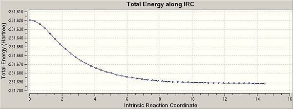 The reaction coordinate of the transition from product to reactant can be calculated alongside a graphical representation. The IRC of the boat transition state was calculated using 50 steps.