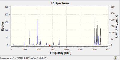 The vibration data indicated 42 different vibrations that gave rise to the obtained IR spectrum. The highest frequency vibration of the in total 42 vibrations is shown below: