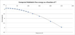The equilibrium structure at any temperature is always that with the lowest free energy. So temperature dependence of a crystal structure can be modeled by calculating the minimum of the free energy. This is achieved using a GULP optimization calculation. The final lattice parameters and total energy, of the system at different temperatures, were extracted from the log files and used to probe the thermal expansion of MgO. From figure 11 it is clear that as temperature increases quadratic decay is exhibited by the free energy. Hence the magnitude of the free energy increases. This is behavior is expected given that A=U-TS. Where A= Helmholtz free energy, U=internal energy, T= temperature and S=entropy. Thus the higher the energy the more negative A becomes. The gradient of the curve significantly increases as the temperature approaches the melting point of MgO (see Figure 11).