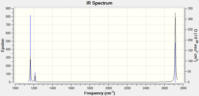 The infrared spectrum of BH3, obtained from frequency analysis, is shown below in Figure 8.