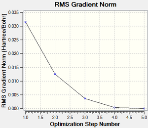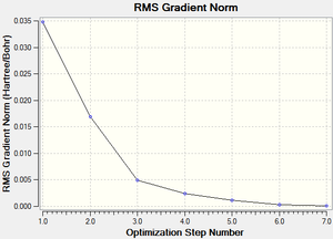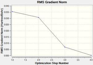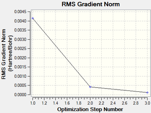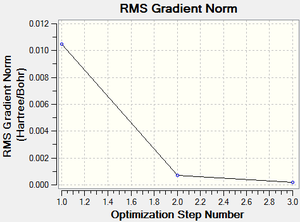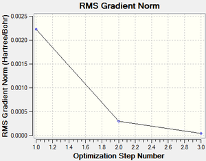 The RMS (root mean square) gradient curve (Figure 3) shows that the gradient goes to zero as the minimum is approached.