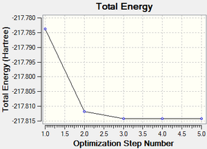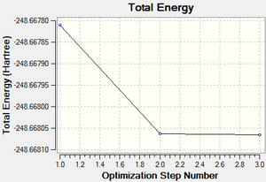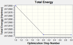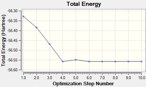 The total energy curve (Figure 45) shows the program moving along the potential energy surface (PES) of the pyridinium molecule and finding the minimum energy structure.