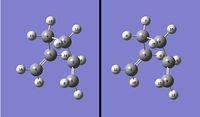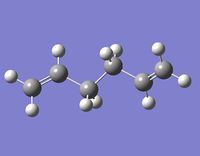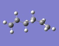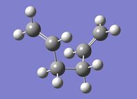 A gauche 1,5-hexadiene molecule was optimised to a minimum at the HF/3-21G level of theory. This particular gauche conformer (gaucheA) was found to be equivalent to gauche2 in the table here. Gauche2 in this table has an energy of -231.69167 a.u., which is almost the same as gaucheA, with a value of -231.69166 a.u.. This gaucheA structure and gauche2 have the same point group, C2. Figure 2 shows of gaucheA, and its log file can be found here