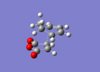 The structures previously optimised to the B3YLP/6-31G* level were combined to give a transition state for an endo Diels Alder reaction. These were then optimised to a transition state with TSBerny to HF/3-21G, giving a transition state of energy -605.61036822 a.u. with an imaginary frequency of -643.58 cm-1. This transition state can be seen in figure 24.
