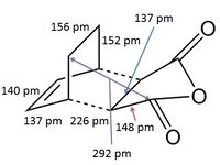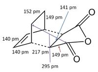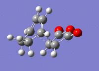 Cyclohexa-1,3-diene was drawn out and optimised to a minimum to the HF/3-21G level of theory, giving a molecule of energy -230.54323108 a.u.. This was then further optimised to a minimum to the B3YLP/6-31G* level, giving a molecule of energy -233.41893632 a.u.. Maleic anhydride was also optimised to a minimum twice; to HF/3-21G and then further to B3YLP/6-31G*, giving molecules of energy -375.10351323 a.u. and -379.28954468 a.u. respectively.