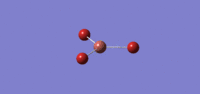 When we look at the energies of the structure it can be seen the the geminal isomer has the lowest total energy and is thus the most stable, with the bridging isomer being the least stable. The briding isomer has the large bromine atoms in bridging position under steric strain, causing the molecule to be less stable. This is steric strain is confirmed when we see that the bridging angle for Al-Br-Al is 88.3 compared to the less strained Al-Cl-Al bridging angle of 89.9 for the geminal, cis and trans isomers.