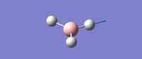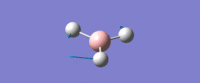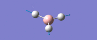 The inital B-H bond lengths were set to 1.50 Å. Using Gausian the geometry of BH3 was optimised using the DFT/B3LYP method with the slightly basic basis set of 3-21G. This method is acceptable for BH3 because it is small and symmetric. This produced an optimised bond distance of 1.19 Å and a bond angle of 120.0°. the molecule was confirmed to be trigonal planar with a point group of D3h.