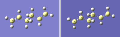 The reactants and products (all low energy conformational isomers of 1,5-Hexadiene) were optimised in order to compare their optimised energy and geometries, and thus find the most stable isomers.
