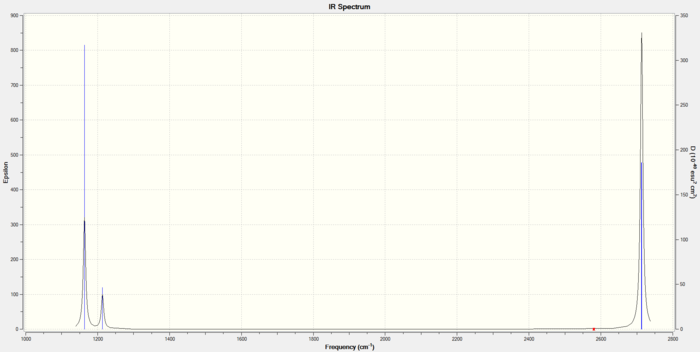 Ng611 (talk) 16:07, 21 May 2018 (BST) Your two modes at 1213 cm-1 are degenerate -- why therefore would one be slightly IR active, and the other be normally IR active (even their calculated intensities are identical)?