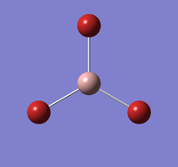 The symmetry was constrained to D3h. As expected, this resulted in a planar geometry where all bond angles were 120.0° and all Ga-Br bond lengths were the same (2.35 Å).