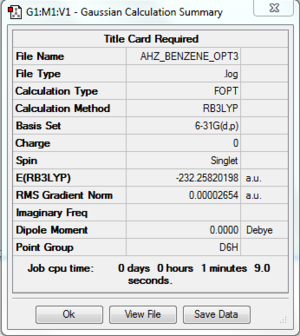 Item Value Threshold Converged? Maximum Force 0.000045 0.000450 YES RMS Force 0.000016 0.000300 YES Maximum Displacement 0.000097 0.001800 YES RMS Displacement 0.000036 0.001200 YES Predicted change in Energy=-1.579511D-08 Optimization completed. -- Stationary point found.