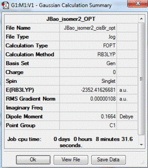 The dissociation energy for lowest energy isomer can be determined by computing the energy of the AlBrCl2 monomer and using this formula: ΔE = E (isomer 3) − 2 x E(monomer)