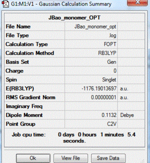 Bond length and angles were found using the enquiry button, from the fully optimised structures of monomer and dimer. The key things to note were: