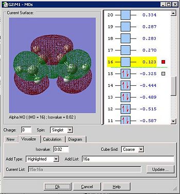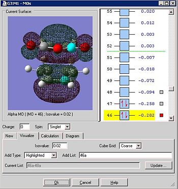 Cis-butadiene was optimised frist via semi-empirical calculation then via the Hartee-Fock method and finally B3LYP. The HOMO below is from the Hartree Fock method: