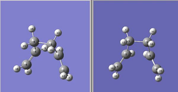 - locate low energy minima and transition structures on 1,5-hexadiene potential energy surface