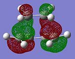 The frontier orbitals of the reactants were found by optimising the structures using the semi-empirical AM1 method in Gaussian. The resultant orbitals can be seen below with an iso-value of 0.05.