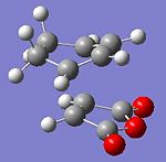 In the prototypical Diels Alder reaction modelled above, there are no issues with selectivity. However, when the reactants are both cyclic, regiostereochemical implications ensue. In such cycloadditions, either the exo or endo product can be formed. In some cases, such as the reaction of cyclopentadiene with maleic anhydride[4], a preference for the exo product has been observed, which has been explained by the formation of secondary orbital interactions[5].