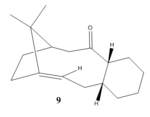 Taxol, an antileukemic and antitumor drug commonly made from Taxus brevifolia [2]. During its synthesis proposed by Paquette, two key intermediates 9 and 10 are produced with the difference being the CO group point up in 9 and down in 10. The two molecules are an examples of Atropisomers, these isomers arises due to the inability to freely rotate a single bond (a higher energy barrier exists between the 2 isomers), usually as a result of steric demand, and are most commonly found in rings with macrocyclic structures[3].