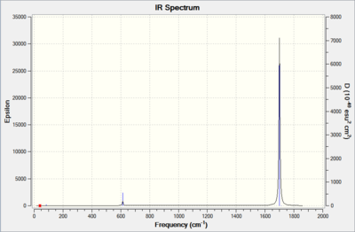 As can be seen from above table, the energy obtained from this calculation is the same as the one in the optimization, hence it is reasonable to say the two structures are the same. The spectrum generated and the data of vibrations are showed below: