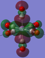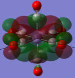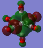 Each CO have two pi-orbitals, which leads to many combination of them when six CO are present in a ML6 complex. However, only one combination is capable of accepting back-donation as only the t2g combination of the CO pi-orbitals matches the symmetry of the metal orbitals[30]. The rest of the combination would exist as non-bonding orbitals and does not effect the energy splitting nor the stability of the metal complex. A few of the different combinations are shown below: