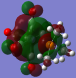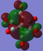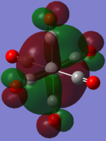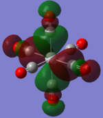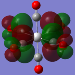 The resulting MOs from Gaussian calculation are compared with the qualitatively predicted LCAOs (Linear Combination of Atomic Orbitals) MOs[3] in the MO diagram below: