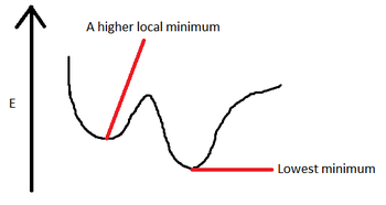 Also shown above, alone with the total energy of the molecule is the graph showing the RMS (root mean square) gradient of the total energy graph. It is the first derivative of the energy of the molecule, when it reaches 0, the energy is at a local minimum. However, this is only a local minimum, does not necessarily represent the lowest minimum. For example, if there are two minima separated by a barrier, it will arrive at the one closest to it not the one with the lowest energy.