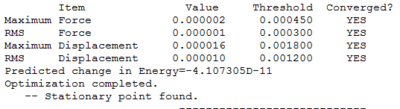 | RMS Gradient Norm | 0.000(+/- 3.808 x 10-3) | a.u. |