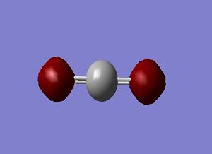 Considering MO=1 (E=-19.23659 au), the 1s Atomic Orbitals (AOs) contribute to the Molecular Orbital (MO); as such electrons are core and not valence, the overlap is small (almost negligible) as exemplified by MO=2 ,the Anti-bonding MO which is almost identical in energy. MO=3 (E= -10.38530 au) shows the sigma framework within CO_2 whilst MO=4 (E= -1.16098 au) shows the pi and sigma overlap (double bond) leading to a higher energy. M=11 (E= -0.36997 au) is the HOMO and an orbital resulting from mixing. M=12 (E = 0.02992 au) is the LUMO, thus has positive energy as there are no valence electrons that experience Coulomb forces of attraction.