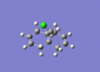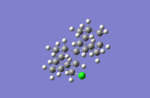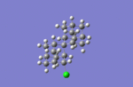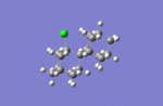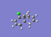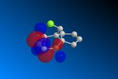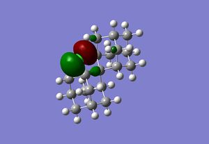 Making sense of the thermolysis reaction using molecular orbitals is not intuitive, and is quite obscure given that most of the orbitals are spread out over the entire molecule. Moreover, it is not certain that such an interaction is orbital-driven, since MM2 energies were proved more useful then MOPAC. However, a mechanism can be proposed and supported with MO calculations. It is possible that the rearranged chlorine does not stay within the initial adamantane unit it was in upon thermal rearrangement. A possible mechanism is given below, where the chlorine "jumps" to the other adamantane unit which upon rotation is the 4-chlorodiadamantane species. This is a plausible mechanism, as the proximity is enough for the chlorine HOMO to attack. Upon displaying the orbitals, it was seen that the HOMO of 1-chlorodiadamantane lies on the C-Cl bond, and it pointed towards the possible rearrangement site given in the figure. This orbital also causes the intrinsic Cl distortion in the species, which is again seen in the figure.