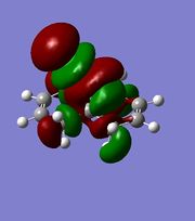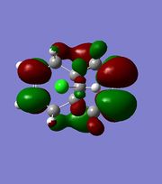 The relevant molecular orbitals have been calculated with the appropriate method used in the carbenylation section, and the HOMO and HOMO-4 are given for reference. The compound has Cs point group, and this can be viewed clearly in the HOMO-4 level, where the plane of symmetry can be compared to the chloro-substituted bicyclic dialkene.