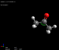 To rationalise this difference, it is necessary to look at the carbonyl group, as this is the only thing which has changed (the ring may have altered slightly, however little change in the Van der Waals energy shows that it has not changed enough to cause any significant alteration in attraction or repulsion of atoms according to the Lennard-Jones potential[9]). The bond lengths and angles are compared to acetone to see if one isomer deviates from reality: