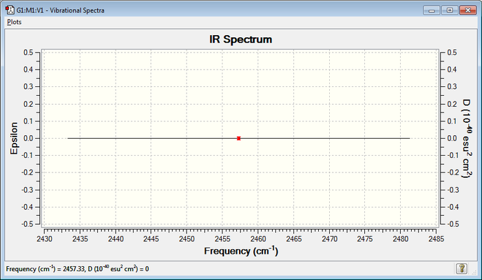 In the spectrum it is possible to observe 2 bands of high intensity that correspond to the asymmetrical "stretching" and "bending" modes, which involve a significant change in dipole. In addition, there is a very small band given by the symmetrical "stretching" mode, which only involves a very little change in dipole.