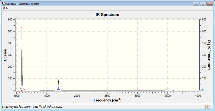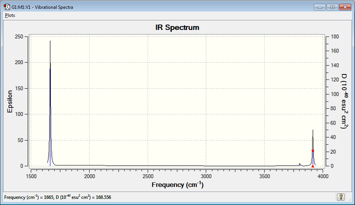 2 bands would be expected in the experimental spectrum of gaseous ammonia: in fact, the values of the Infrared column in the above tab for modes 4,5 and 6 suggest that the intensity of the bands is very little and thus not visible, and this is due to the fact that the stretching vibrations do not induce a strong enough change in dipole and are therefore IR inactive.