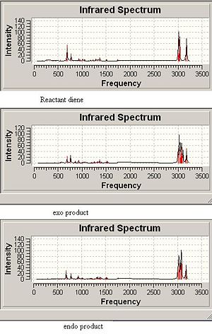 Addition is more likely at the exo double bond due to it having a lower energy π orbital which is likely to be closer in energy to the LUMO of the attacking species.Fig 3 shows the computed spectra of all three isomers.