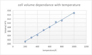 Above 400K the lattice vector was seen to increase linearly with temperature. Bellow 200K there was a constant relationship between temperature and lattice vector. This means that bellow 400K the model is inappropriate for modelling the lattice vector.