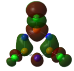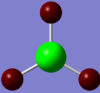 TlBr3 was optimised using the DFT/B3LYP method using the LANL2DZ basis set. The conformation was constrained to D3h to save calculation time as TlBr3 due to the molecule containing many (186 = 81(Tl) + 3 x 35(Br)) electrons. With such large atoms involved a pseudo-potential had to be used as both atoms exhibit relativistic effects which cannot be recovered by the standard Schrödinger wave equation. The optimisation calculated the bond angle of 120o (which it was originally constraint to) and the bond length of 0.265 nm (lit.[3] 0.265 nm).