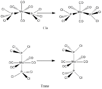 There were six vibrational modes however only 3 peaks were present on the IR spectrum. The reason for this was that the symmetrical stretching mode (mode 4) does has a net dipole moment of 0. This was why the intensity of the peak was 0 due to its IR inactivity (only molecular vibrations with which involve changes in dipole moments are IR active). Modes 2 and 3 (1204cm-1), and 5 and 6(2737cm-1), were degenerate. This meant the peaks were superimposed as pairs.