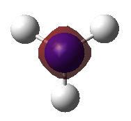 From the charge distribution, it can be seen that the nitrogen is negatively charged whilst the hydrogens are positively charged. This makes sense as nitrogen is more electronegative than hydrogen and therefore pulls electron density away from the hydrogen atoms. This is supported by the results of the NBO population analysis: