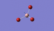 The calculated Ga-Br bond distance and Br-Ga-Br bond angle are shown in the table to the left. The Ga-Br bond distance for gaseous GaBr3 has been reported to be 2.239 Å at 357 K;[3] this is similar to the value obtained in this calculation. The Br-Ga-Br bond angle was found to be 120° as expected for a trigonal planar molecule.