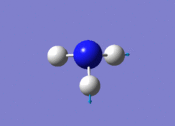 NH3 was optimised using the 6-31G(d,p) basis set with the additional keyword nosymm. This destroys the symmetry and allows the molecule to find its lowest energy structure - useful if the point group of the molecule is unknown. The log file was checked to ensure that the forces and displacements had converged.