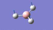 The calculated B-H bond distance and H-B-H bond angle for the optimised BH3 molecule are shown in the table to the left. The experimentally found B-H bond length of BH3 has been reported to be 1.190 Å in literature,[2] showing very good agreement with the bond distances calculated from both basis sets. The H-B-H bond angle was found to be 120° as expected from a trigonal planar molecule such as BH3.