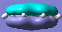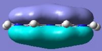 Below are pictures of the molecular orbitals which best illustrate the extensive electron delocalisation seen for this molecule.