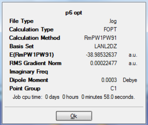 | -617.53 Hartree a.u. | 0.00 Debye |